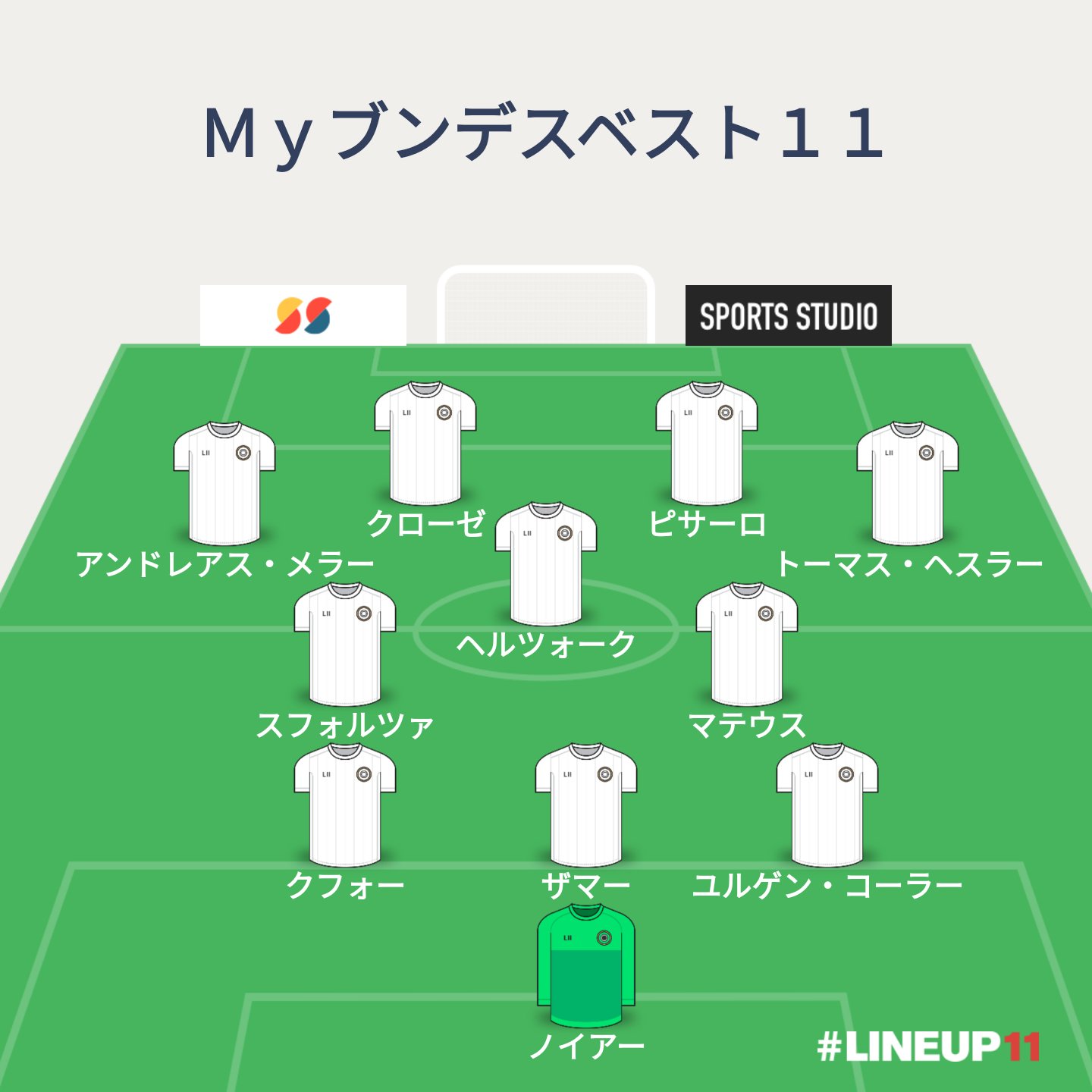 וקמטים myブンデスベスト11 gk ノイアー df ユルゲン コーラー ザマー クフォー mf マテウス スフォルツァ トーマス ヘスラー ヘルツォーク アンドレアス メラー fw ピサーロ クローゼ 監督 トーマス シャーフ